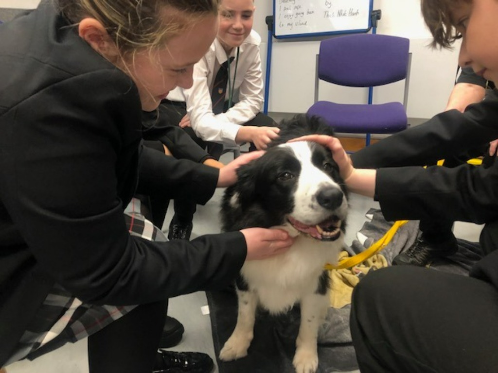 - Touch: Simple comforts can help ease stress—wrapping up in a soft blanket, wearing cosy clothing, soaking in a warm bath, or enjoying a relaxing massage. One of the highlights of the day was the return of Godfrey the Therapy Dog and his owner, Pam. Students and staff loved engaging their sense of touch by spending time with Godfrey, whose calm and gentle nature brings joy and comfort to everyone he meets. He is truly a superstar here at St Mary’s, and his visits always lift the whole school’s spirits.